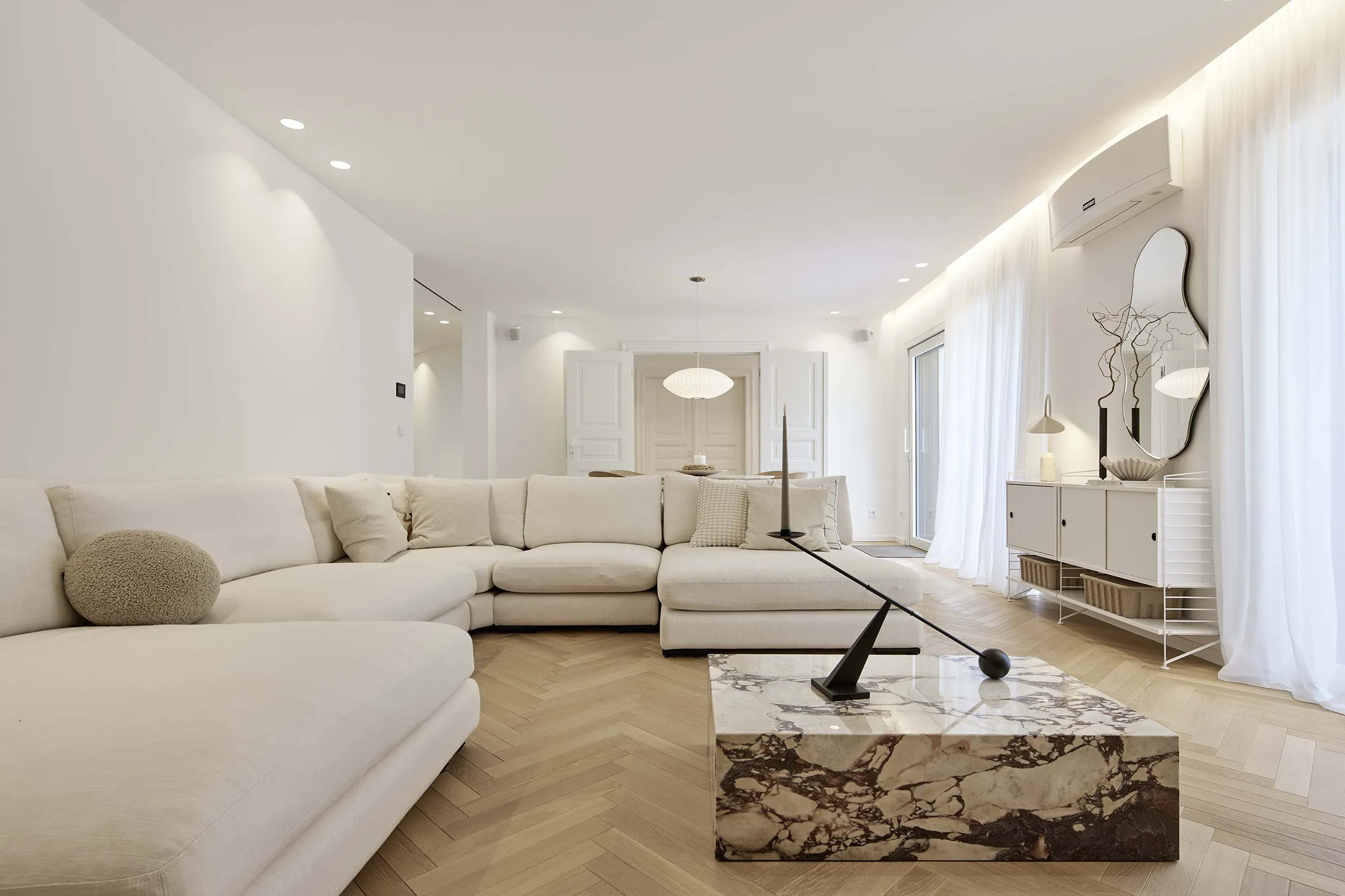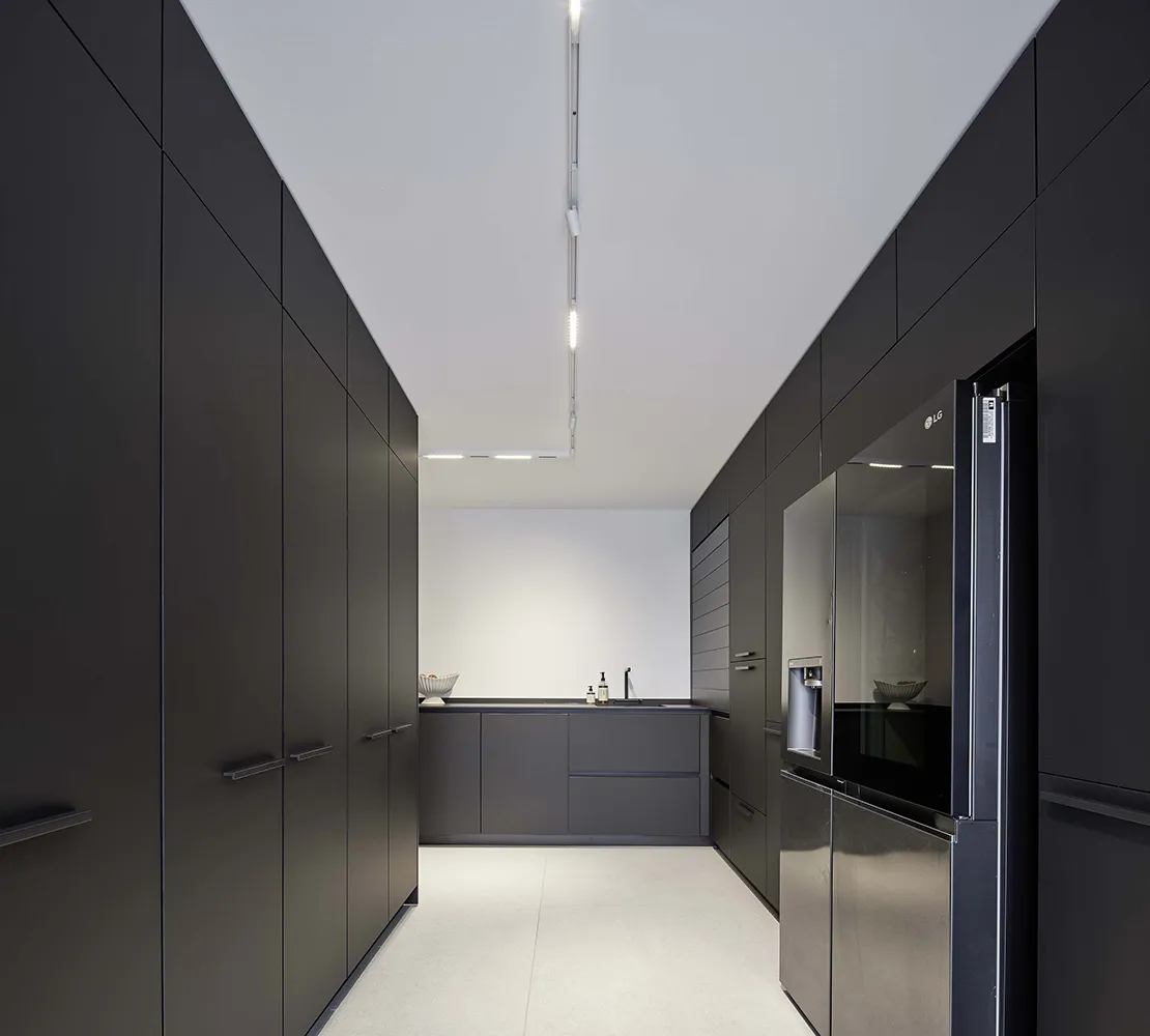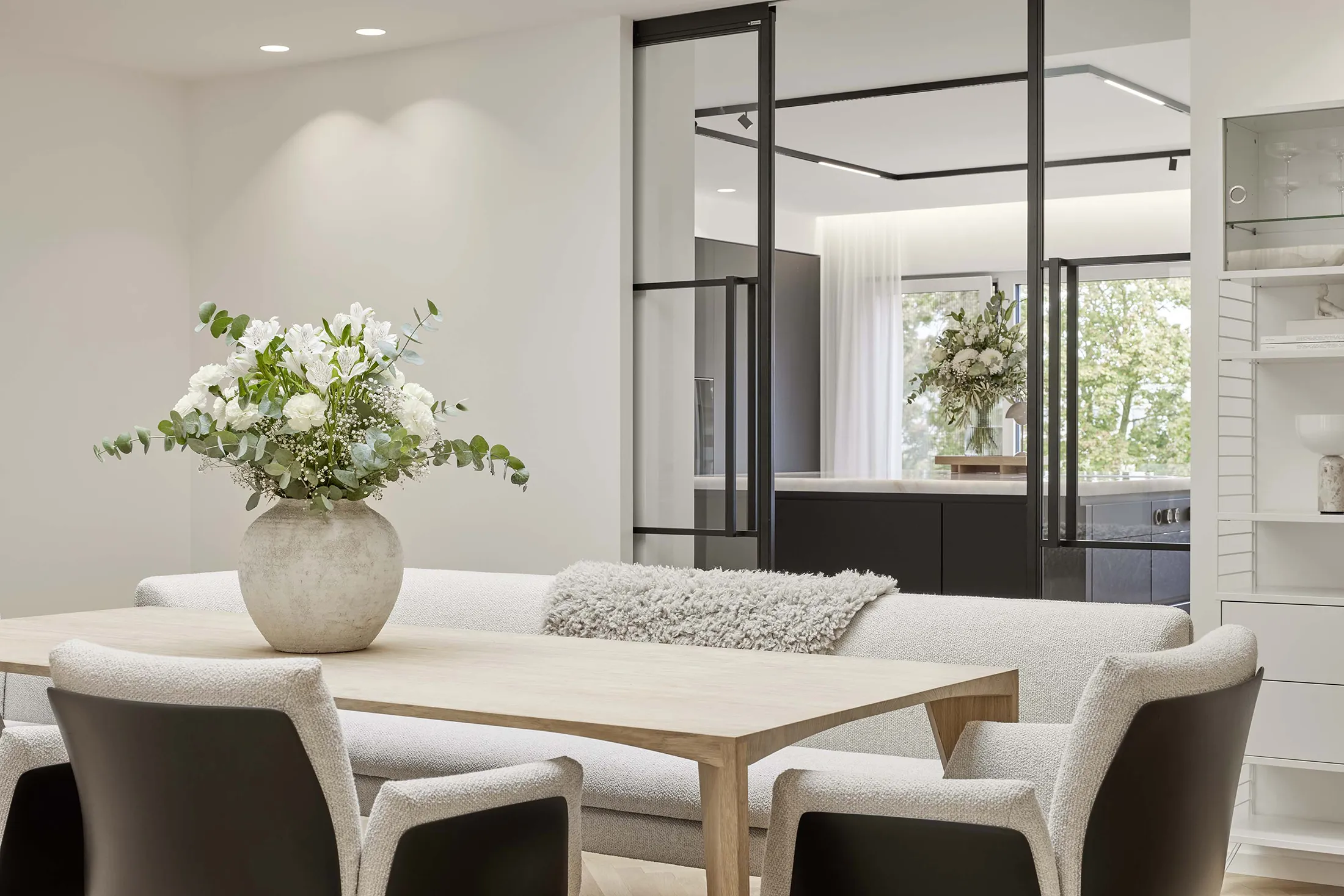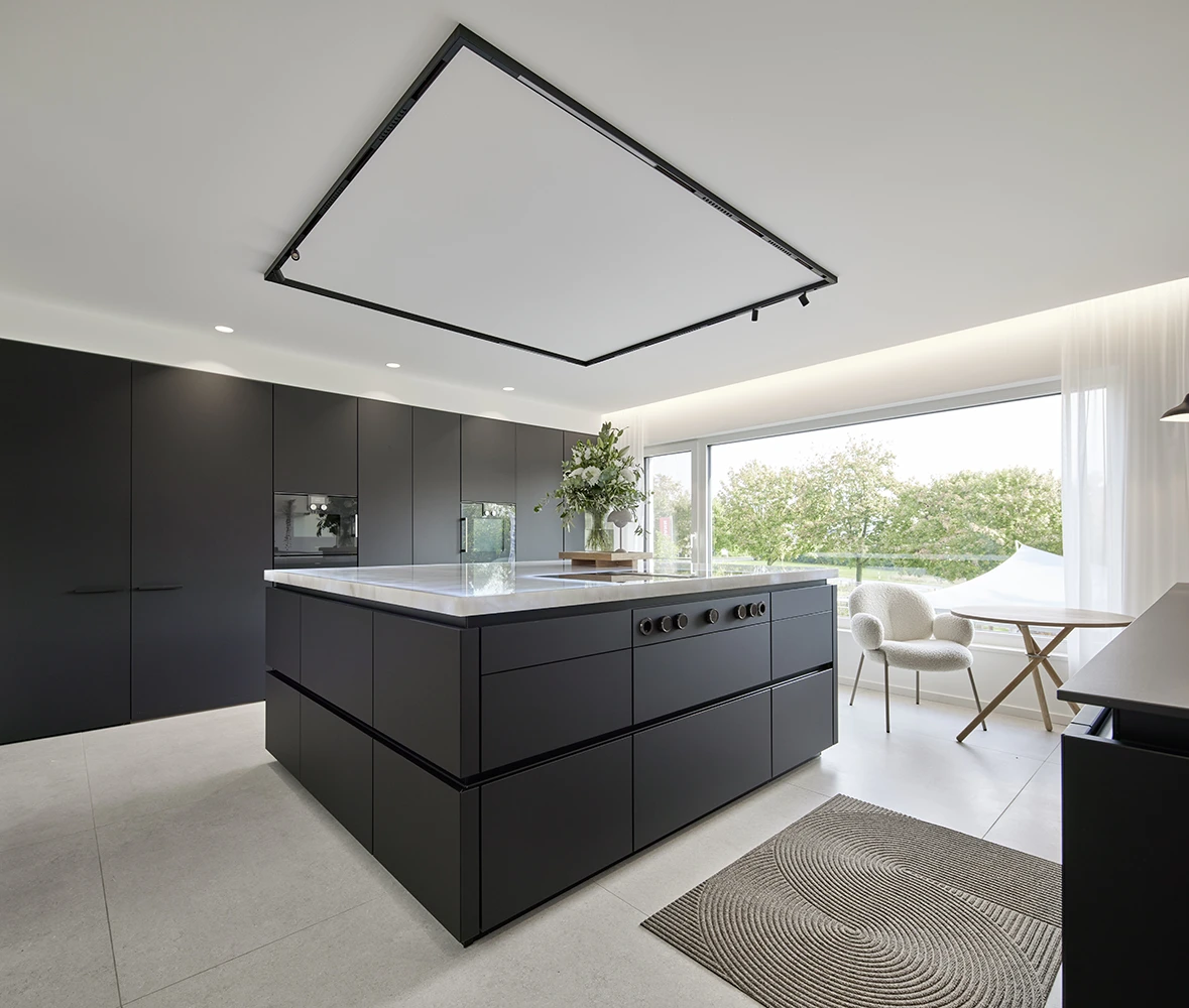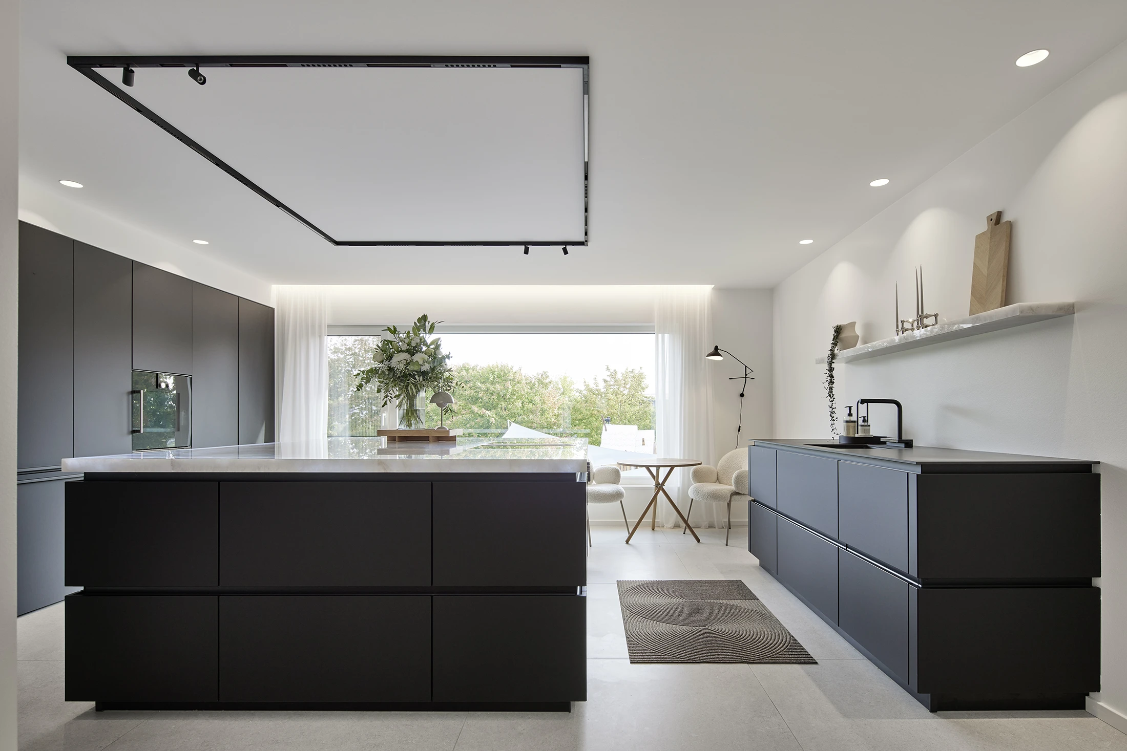 Nicht nur die Küche selbst, sondern das gesamte Wohnkonzept wurde von uns geplant, konzipiert und umgesetzt. Räume, Materialien, Farben und Möbel greifen harmonisch ineinander und schaffen ein durchgängiges Gestaltungsbild – von der Küche bis in die angrenzenden Wohnbereiche. Alles wirkt wie aus einem Guss und spiegelt einen kompromisslosen Anspruch an Design und Funktion wider.