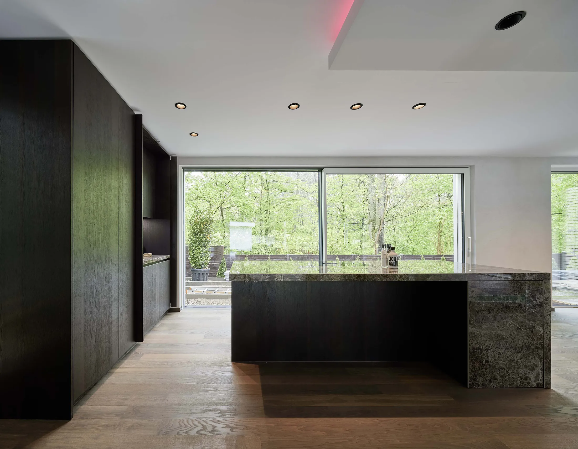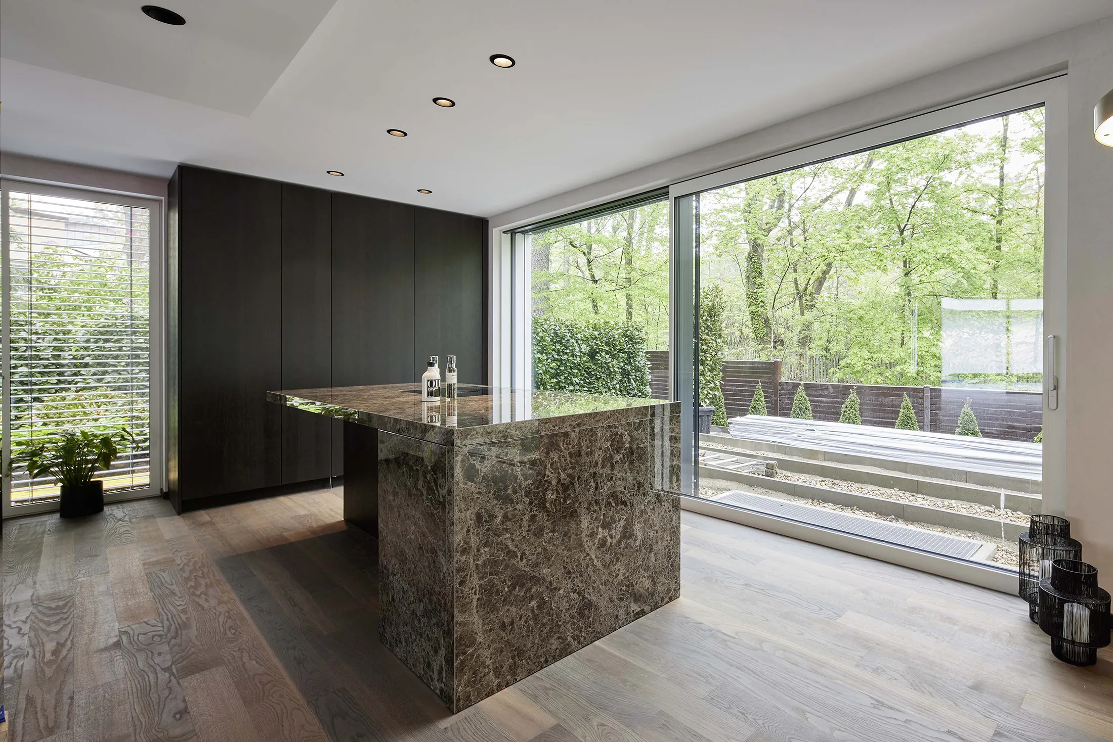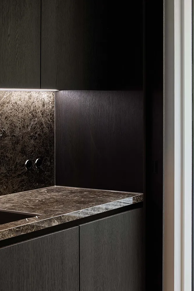 Dunkles Holz und spektakulärer Marmor