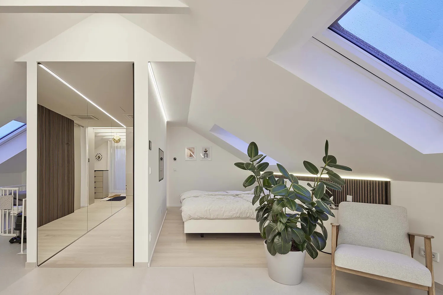 Aus drei kleinteiligen Räumen entstand durch den Rückbau tragender Wände eine großzügige, offene Raumfolge, die heute Küche, Ess- und Wohnbereich verbindet. Tageslicht flutet ungehindert durch die neuen Sichtachsen, Raumgrenzen lösen sich auf, und der Grundriss wirkt, als sei er nie anders gedacht gewesen.