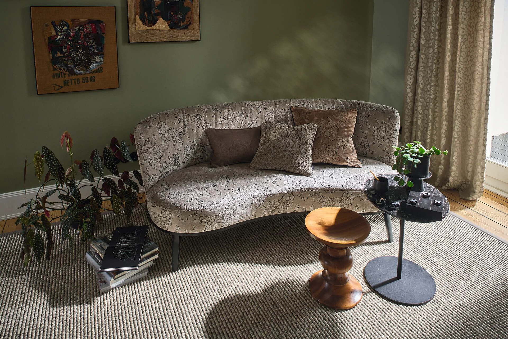 Als stilvolles Pendant zum Stoffsortiment stehen Teppiche, Teppichböden und Design-Bodenbeläge in ausgewählt hohen Qualitäten zur Wahl. Komplettiert wird das stimmige Angebot durch sorgfältig von Hand gefertigte Polstermöbel sowie eine kleine, aber feine Kollektion von Tapeten.